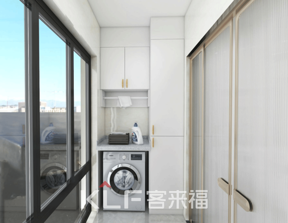 臥室的對面就是書房了,簡單的設(shè)計(jì),讓書房看起來更加的安靜,為屋主人營造出自己的一方小天地。再回過頭來看到的就是陽臺(tái)了,我們將洗衣機(jī)等物品設(shè)置在了陽臺(tái),使得洗衣曬衣更加的方便,同時(shí)也讓千篇一律的陽臺(tái),變得更有自己的特色。