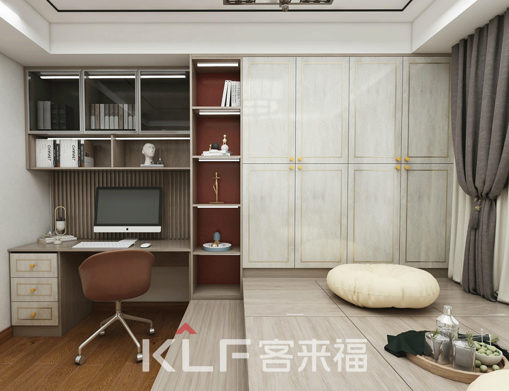 這一套裝修樣式的亮眼之處便是榻榻米房間,提起榻榻米很多人會(huì)想起日本,殊不知榻榻米的起源地卻在中國(guó)。因此我們?cè)谠O(shè)計(jì)之初汲取傳統(tǒng)榻榻米樣式的同并融合現(xiàn)代風(fēng)格,便有了現(xiàn)在的樣式。一壺茶、倆個(gè)人、一盤(pán)棋,共享休閑時(shí)光。