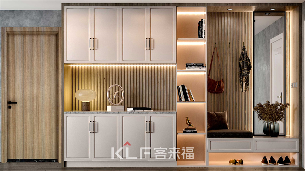 一柜到頂設(shè)計(jì)更顯博朗大氣,簡(jiǎn)約風(fēng)線條構(gòu)造讓單一的白色元素變得深沉。多功能組合鞋柜滿足多樣化的收納需求,讓雜物化整為零。內(nèi)嵌led暖色燈,讓藝術(shù)品和玄關(guān)空間色調(diào)趨于飽滿。入戶穿衣鏡設(shè)計(jì),讓精致時(shí)尚的你隨時(shí)保持優(yōu)雅儀態(tài)。
