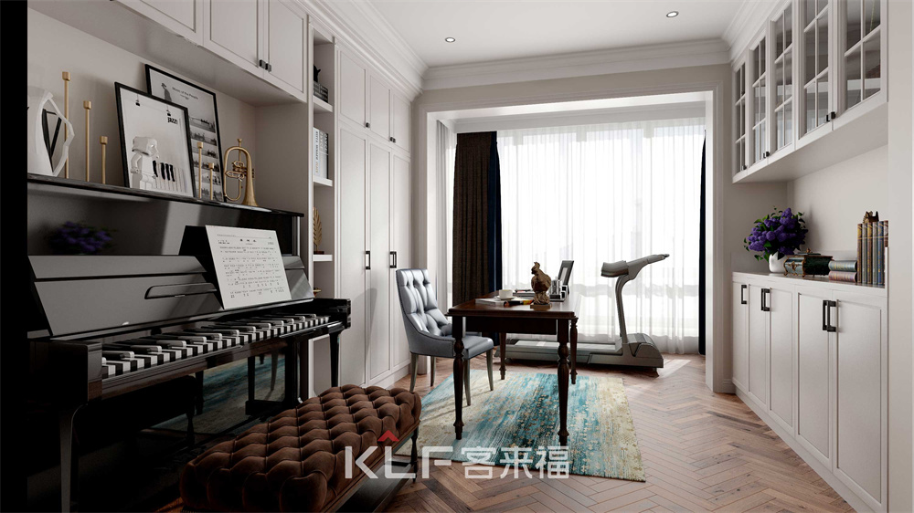 精簡(jiǎn)白色典雅空間內(nèi),優(yōu)雅的黑色鋼琴?gòu)?qiáng)勢(shì)吸睛,將高貴氣質(zhì)展現(xiàn)地淋漓盡致。合理的空間規(guī)劃,讓小小的書房幻化成凡爾賽現(xiàn)場(chǎng)。人性化多層窗簾設(shè)計(jì),合理利用陽光。白色加深色系搭配沖擊,凸顯書房主人別樣雅致,可謂“腹有詩書氣自華”。