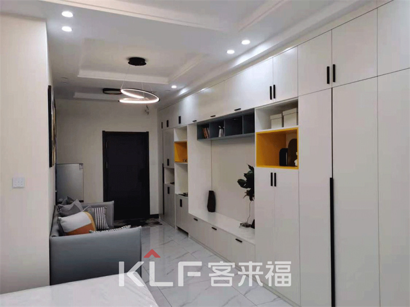為貼合現(xiàn)代年輕人的喜好,裝修風(fēng)格主要為現(xiàn)代輕奢風(fēng)。以不易黑白灰為基色,并以暖色調(diào)搭配,讓在外拼搏勞累一天的年輕人,回到家中能夠感受到家的溫暖。