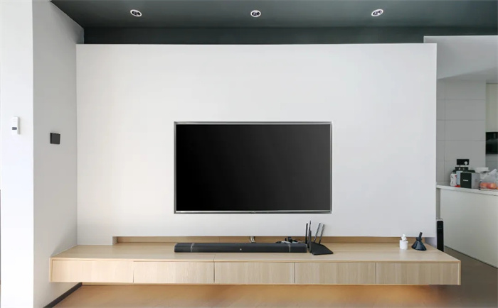 電視背景墻沒有做整面的內(nèi)嵌式的電視柜,考慮到客廳內(nèi)的整體面積和空間展示,以整面的大白墻打底更符合極簡主義的特點,在電視柜的內(nèi)部安裝了燈帶,夜晚看電視的時候也能多一份溫馨。