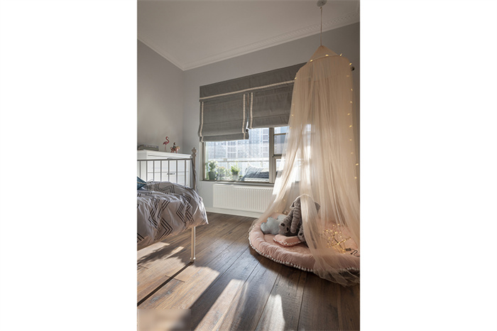 書房的設計營造一種悠閑舒適的閱讀環(huán)境,也可以是書房兒童房一體化設計,實用且簡單。淺灰色墻面清新自然,地上的粉色星星帳篷少女心滿滿,給空間增添了活潑、可愛的氣息。