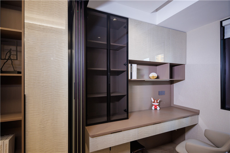 書柜、玻璃柜、抽屜拉手同色,客來福黑好搭且有性價比;書桌定制高度、燈光巧妙搭配,讓學(xué)習(xí)者舒適沉浸;小書房整體協(xié)調(diào)組合,空間利用率高。