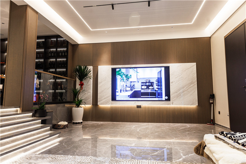 沒(méi)有采用繁復(fù)的裝飾物來(lái)營(yíng)造輕奢氛圍,更多利用設(shè)計(jì)與燈光去巧妙體現(xiàn)家居“奢”的氛圍,體現(xiàn)精簡(jiǎn)的設(shè)計(jì)理念。