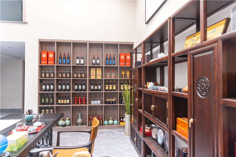 原木色打造的酒柜與收藏柜
