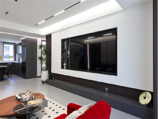 客廳打破空間局限,以簡潔開放的設(shè)計拉伸空間尺度,體感上給予居住者更寬闊的視野。