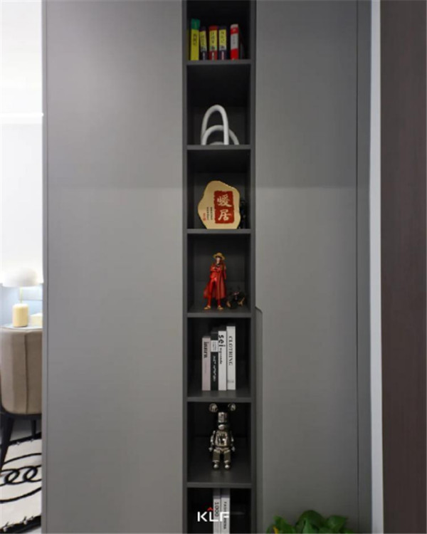 想要做到空間留白與有序收納的平衡,開放式的開放柜與深灰色色彩碰撞,形成不同而合的視觸覺體驗(yàn),意式極簡風(fēng)之下,空間氛圍更顯寬敞。