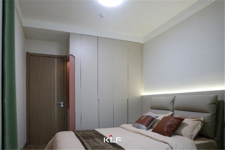 主臥一切以舒適主導,清新淡雅的床頭背景墻營造出恬淡樸素的氛圍,見光不見燈的氛圍,讓空間又多了一份溫暖和舒適。