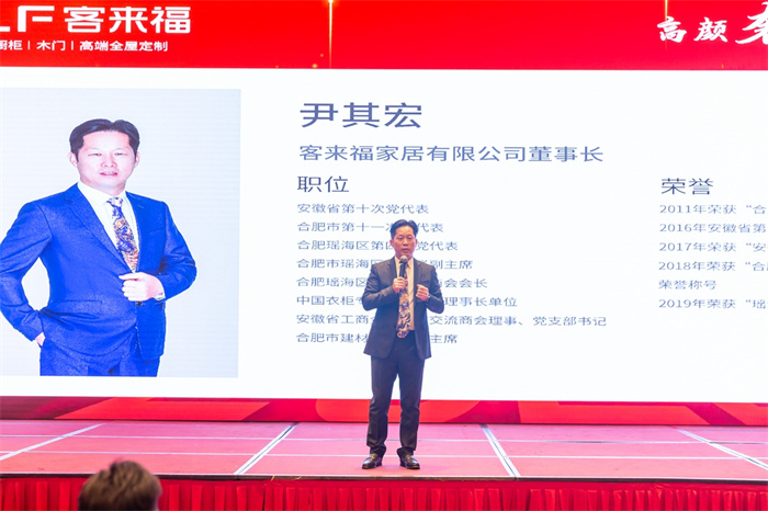 客來福家居股份有限公司董事長尹其宏先生上臺致詞,飽含對每一位家人的真摯情感,在新的一年里,尹董更希望與每一位家人并肩同行,為實(shí)現(xiàn)共同的夢想一起奮斗。