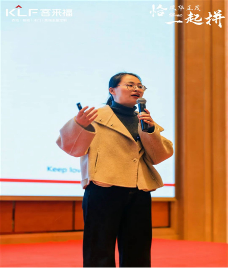 此次客來福核心經(jīng)銷商大會,特邀那木木作收納主理人菡妍老師為大家講授了收納設(shè)計的未來與機遇。她表示,設(shè)計的核心是“人”“家”,從賣品轉(zhuǎn)變到對人全然的尊重,用基礎(chǔ)優(yōu)勢+細分化服務(wù),給客戶一個無法拒絕的理由,尊重家的生活方式,才能贏得訂單。