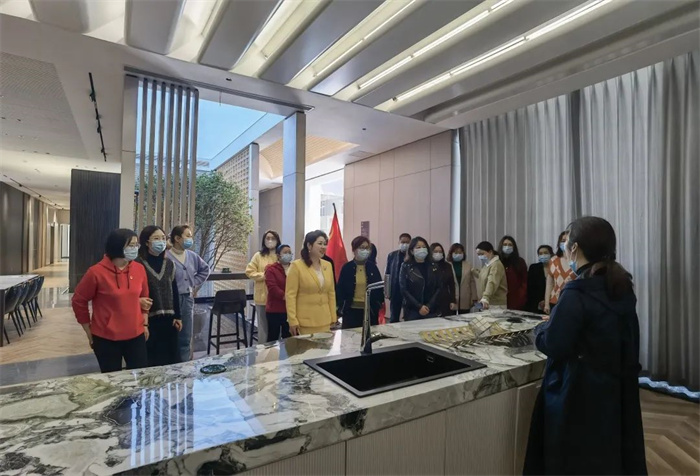 在魏總裁的帶領(lǐng)下,考察團(tuán)首先來到客來福第十二代高定展廳。在展廳內(nèi),幸福路小學(xué)校長(zhǎng)一行近距離接觸了客來福的全新系列產(chǎn)品,對(duì)于智能化帶給客來福的改變有了更為深入的了解和認(rèn)識(shí)。