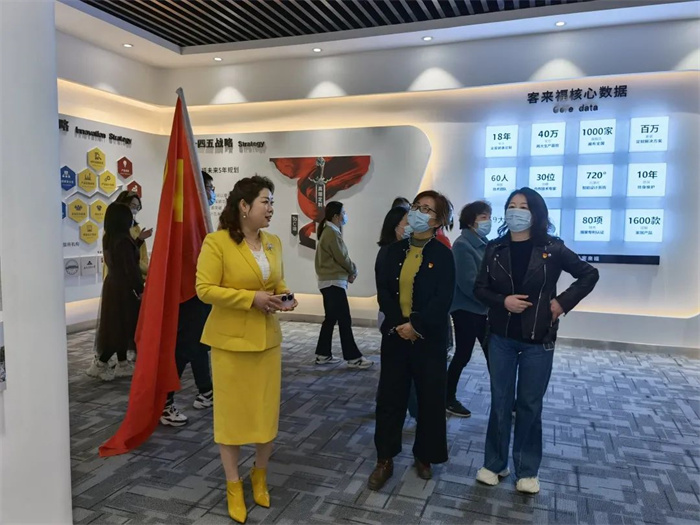 隨后,考察團(tuán)來到客來福企業(yè)文化墻區(qū)域,在魏總裁和解說員的介紹下,考察團(tuán)一行對(duì)于客來福的發(fā)展歷程以及黨建工作開展有了更全面的認(rèn)識(shí)。