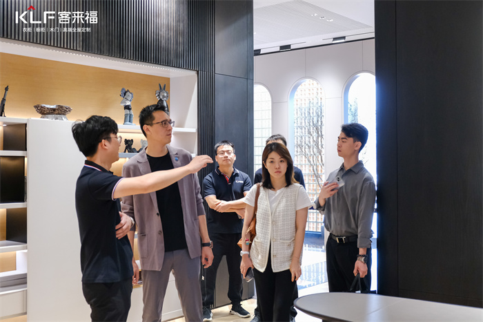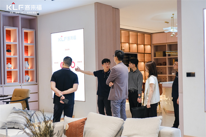 帶領(lǐng)中國(guó)建博會(huì)(廣州)團(tuán)隊(duì)首先來(lái)到客來(lái)福12代展廳,陳總等人在近距離感受客來(lái)福產(chǎn)品后,對(duì)其整體呈現(xiàn)效果表示肯定??蛠?lái)福不同系列裝修風(fēng)格,都細(xì)致把控品質(zhì)、設(shè)計(jì)、色彩等,只為給受眾滿意的與時(shí)俱進(jìn)的特色產(chǎn)品。