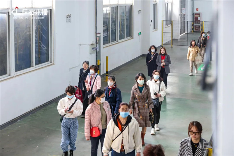 參觀的第一站,領(lǐng)導(dǎo)一行在魏總的帶領(lǐng)下來到了客來福家居4.0智能化生產(chǎn)車間。參觀過程中,魏總向大家講述了客來福家居4.0智能化體系的深度布局,領(lǐng)導(dǎo)們與社員們實看實感后他們紛紛表示智能化、數(shù)字化將會是未來企業(yè)發(fā)展的重中之重,并對客來福家居的產(chǎn)業(yè)模式表示了贊同與認(rèn)可。