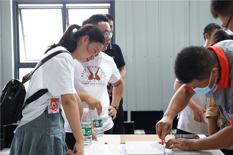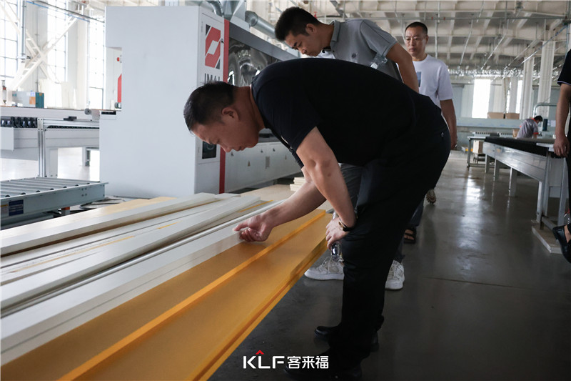 2023年7月16日,客來福鐵三角運(yùn)營團(tuán)隊(duì)和新商匯合,一行人走進(jìn)華東新橋生產(chǎn)基地,領(lǐng)略客來福水漆車間的生產(chǎn)潛力。大家對(duì)于德國伊瑪激光封邊機(jī)的封邊效果表示贊賞,生產(chǎn)線的智能化讓大家對(duì)客來福的交付能力放心。
