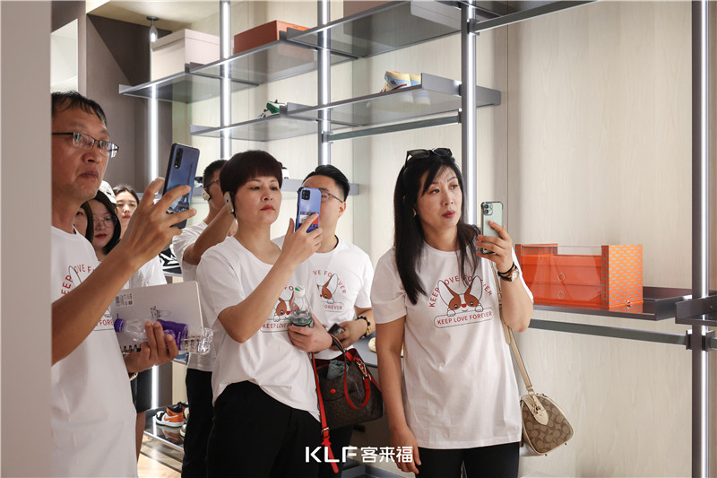 隨后,一行人走進(jìn)客來?!じ镂镎箯d及2023年新落地的13代展廳,通過親看及工作人員的講解,了解了客來福現(xiàn)有的產(chǎn)品體系及高定產(chǎn)品的研發(fā)力,肉眼可見的質(zhì)感下是客來福二十年的家居初心。
