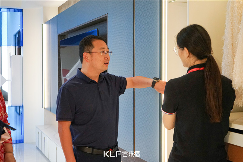 通過客來?,F(xiàn)場工作人員講解展廳產品,體現(xiàn)了客來福對產品的不斷研發(fā)創(chuàng)新,從實際生活出發(fā),充分考慮用戶的使用需求,用現(xiàn)代審美與核心設計手法,打造更懂中國家庭的定制家居品牌。