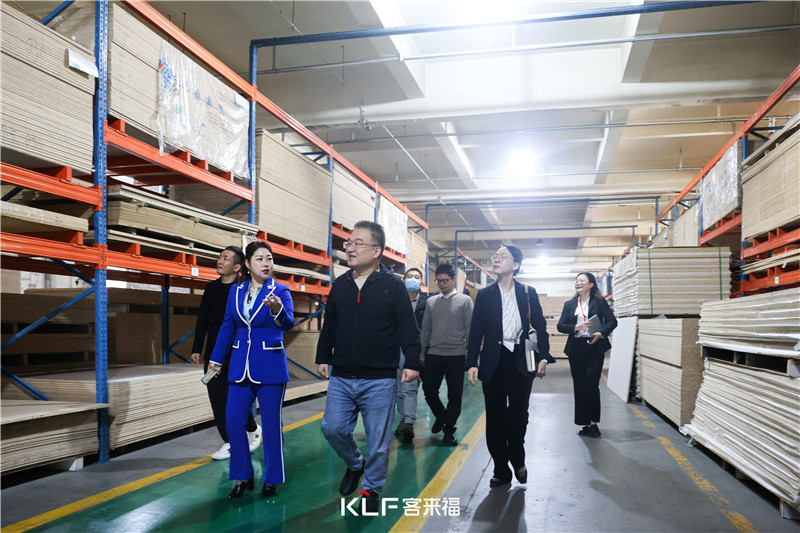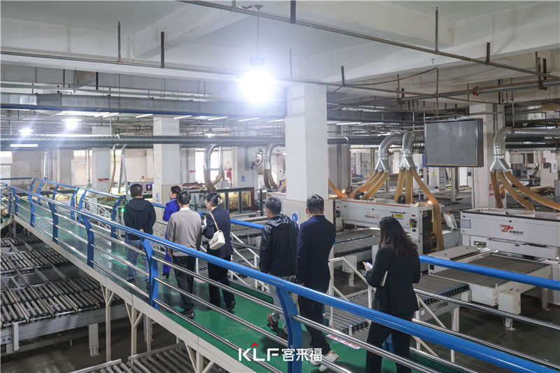 領(lǐng)導(dǎo)一行人首先參觀了客來福華東瑤海4.0工廠車間,對廠內(nèi)的板材制作工藝流程、信息化、智能化生產(chǎn)流程進行詳盡的參觀了解,展現(xiàn)了客來福系統(tǒng)化、標準化的生產(chǎn)水平,以及在家居行業(yè)的品質(zhì)和實力。
