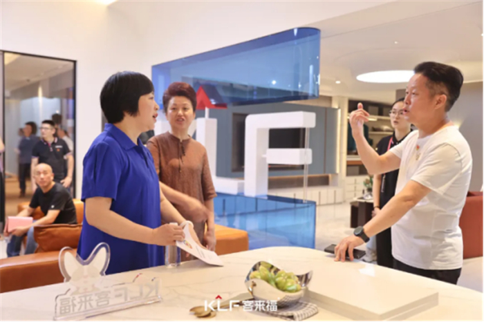 通過客來福工作人員現場講解展廳產品和品牌故事,表達了客來福不斷研發(fā)創(chuàng)新,用現代審美與核心設計手法,打造更懂中國家庭的定制家居品牌的堅定決心。