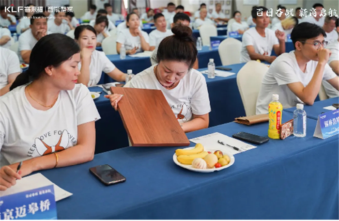 隨后,設(shè)計(jì)督導(dǎo)部主管張言發(fā)帶來(lái)實(shí)木水漆新品發(fā)布,現(xiàn)場(chǎng)詳細(xì)講解了新品采用的優(yōu)質(zhì)天然木皮,環(huán)保水性漆涂裝及性能升級(jí)基材等多方面內(nèi)容。未來(lái),客來(lái)福將從差異化競(jìng)爭(zhēng)迭代到優(yōu)異化競(jìng)爭(zhēng),以更出色的產(chǎn)品作為銷(xiāo)售保障,助力經(jīng)銷(xiāo)商們放心“沖鋒”,斬獲訂單。