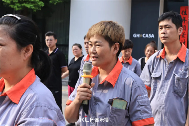 在經(jīng)過簡單的整隊后,各中心負(fù)責(zé)人匯報人員到場情況。隨后,升國旗奏國歌儀式正式拉開大會序幕。在飄揚的旗幟下,全體員工進(jìn)行企業(yè)價值觀宣讀,展現(xiàn)了客來福家人們斗志昂揚的精神面貌。