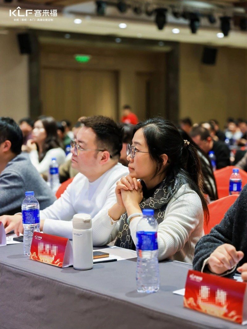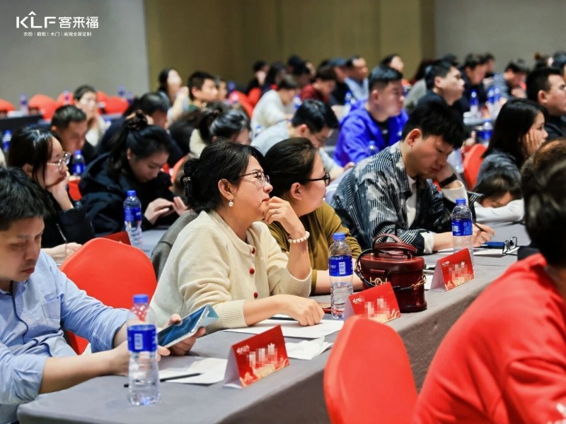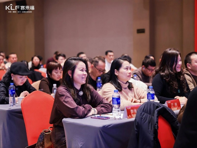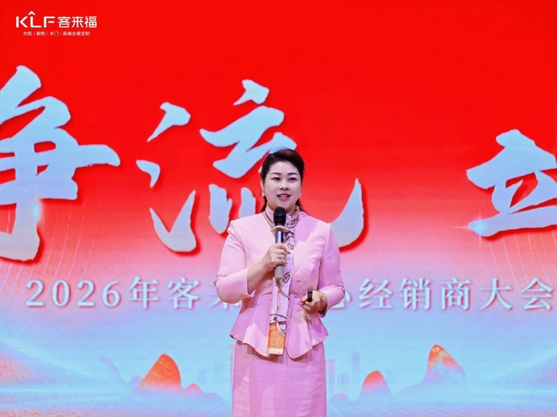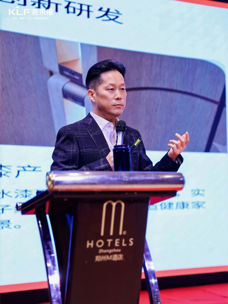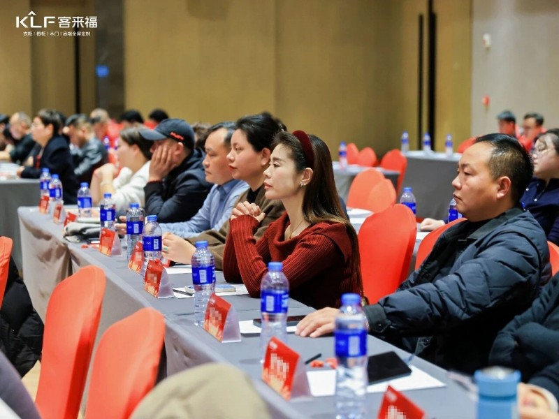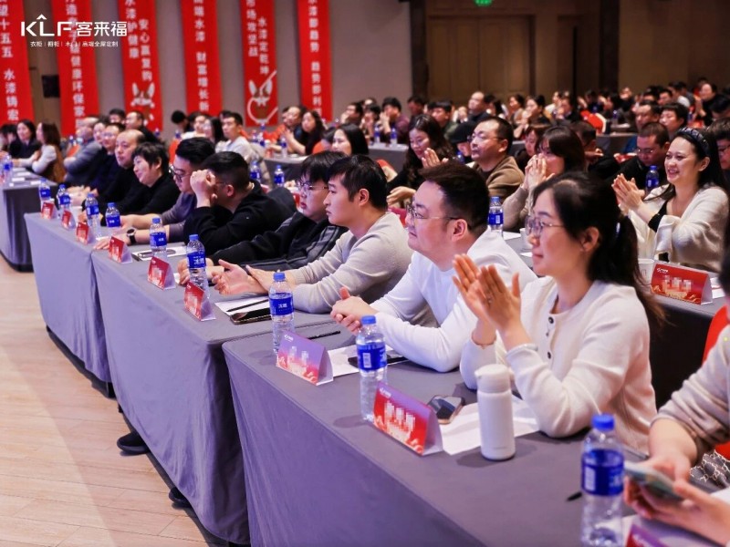 在熱烈的掌聲中,客來福商研部研發(fā)總監(jiān)劉云輝先生登臺,為全場經(jīng)銷商帶來了2026年度新品深度解析。從核心板材五金到前沿色彩搭配,再到整體空間解決方案,系統(tǒng)闡述了新品的競爭優(yōu)勢與匠心設(shè)計。干貨滿滿的分享,令在座合作伙伴對年度新品矩陣與市場前景有了清晰認(rèn)知,信心倍增。