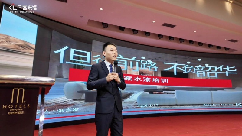 緊隨新品分享后,客來福設(shè)計督導(dǎo)主管張言發(fā)先生登臺,聚焦“水漆工藝與應(yīng)用”展開專項培訓(xùn)。他深入剖析了水性涂料的環(huán)保特性、工藝優(yōu)勢及終端展示要點(diǎn),通過實(shí)際案例解析,強(qiáng)化了經(jīng)銷商對客來福健康產(chǎn)品體系的理解與推廣能力,為終端市場注入了堅實(shí)的環(huán)保技術(shù)支撐。