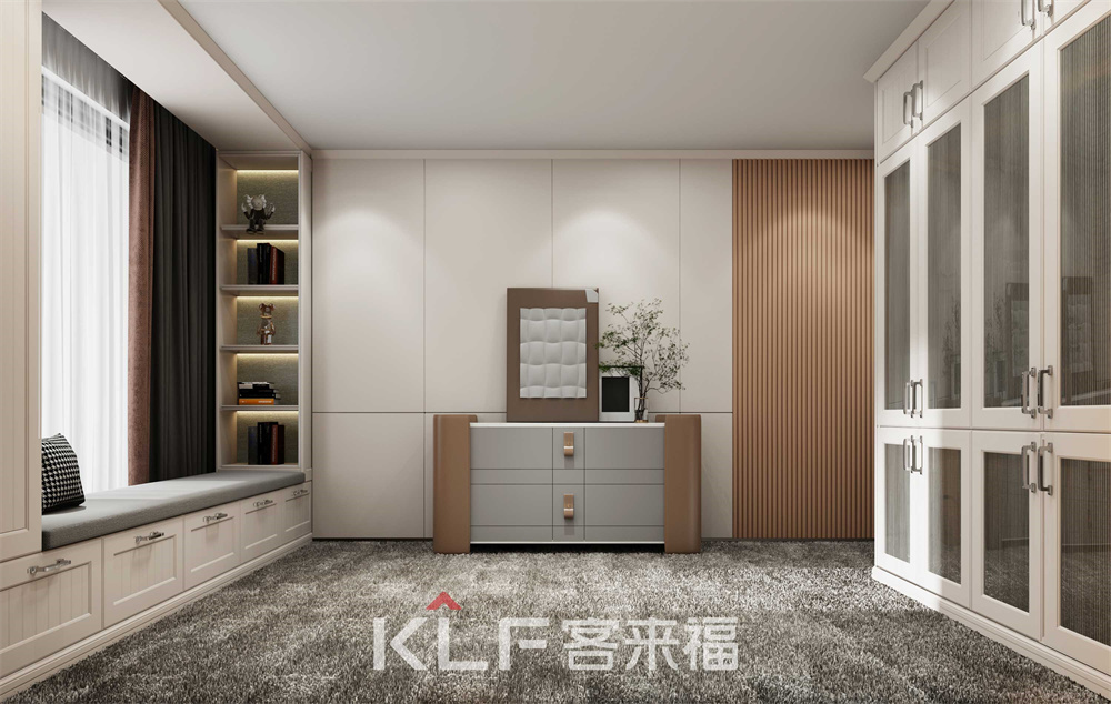 臥室的柵格背景墻和模壓護墻,做出了高定混油的產(chǎn)品效果,超晶板和巖板等超現(xiàn)代感的元素的融入,更是將簡歐這一經(jīng)典風格產(chǎn)品做了顛覆,更符合當下消費人群讓客戶生活更加自然。