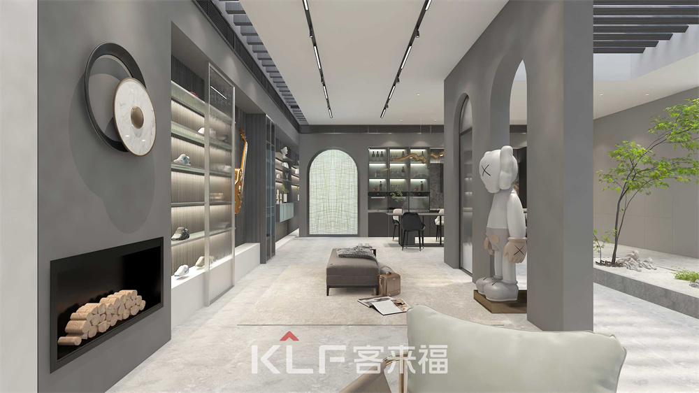 展示柜采用平面一體化設計,分為鞋品展示區(qū)、酒柜區(qū)、私人珍藏區(qū),收納的同時滿足個性化的需要。柵欄式背景,流線型一體化放大視覺效果。橫線板與豎體方框的嵌入式設計,幾何空間安排整體自然順暢。鋁框玻璃展示柜,搭配燈層板,效果更好。